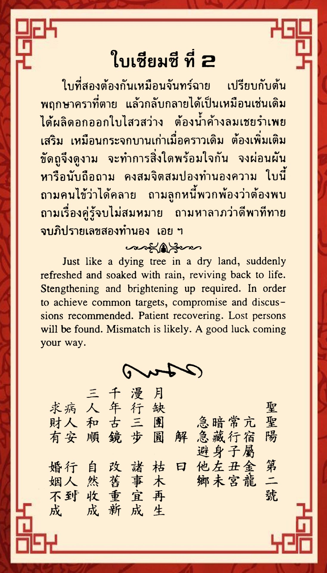 เซียมซีใบที่ 2 เหมาะถามเรื่องอะไร?
